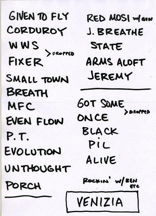 Setlist PJ della serata